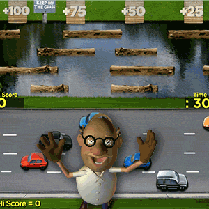 Help Rodger cross the street. But watch out for the cars, killer frogs, and explosive grass.