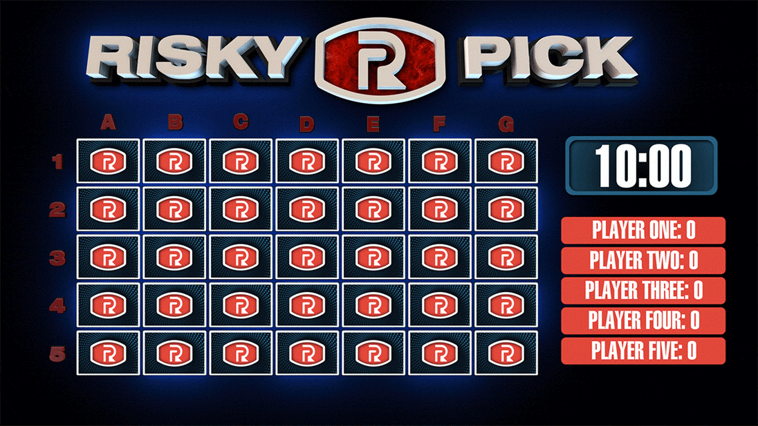 Let's flip the cards and shuffle them up. We will start by picking a random player. Pick a card by giving me a letter and a number. Let's make our first ... "Risky Pick".