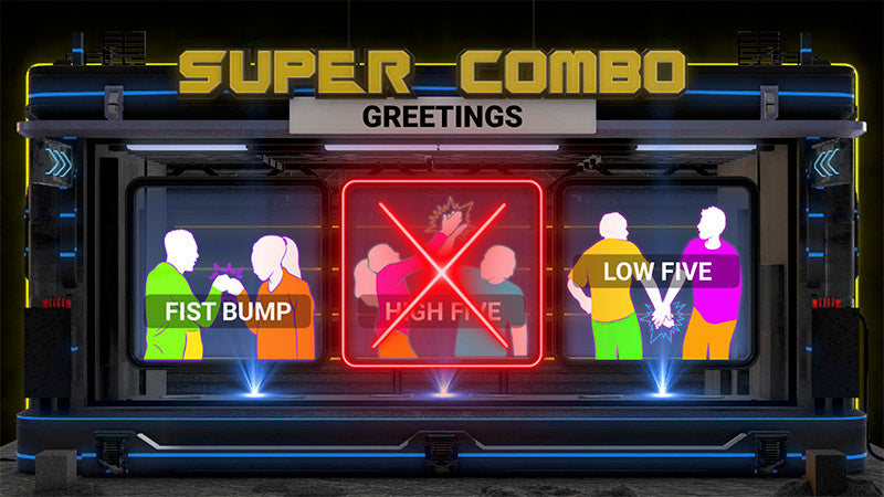 "Looks like we doing "Greetings". Everyone get with your partner and pick one of these 3 combos. (Host can act out each of the combos as needed)
