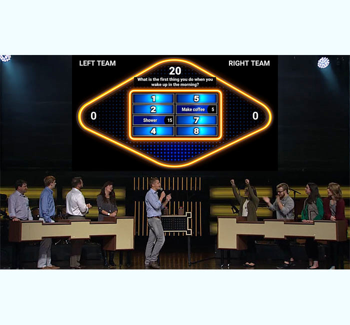 Two teams compete to guess the top 8 answers. This game is ready for a large stage show, but still easy enough to play in your living room. Download now and play on Mac or PC.
